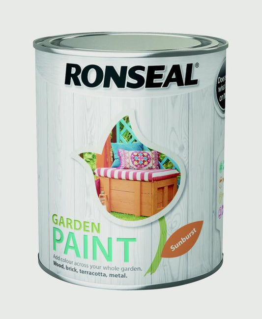 Ronseal Garden Paint 750ml SunburstA product designed to perform on garden wood, plus other garden substrates - metal, terracotta, brick and stone|Waterproofs and protects. Rainproof in 1 hour|Resists cracking and peeling