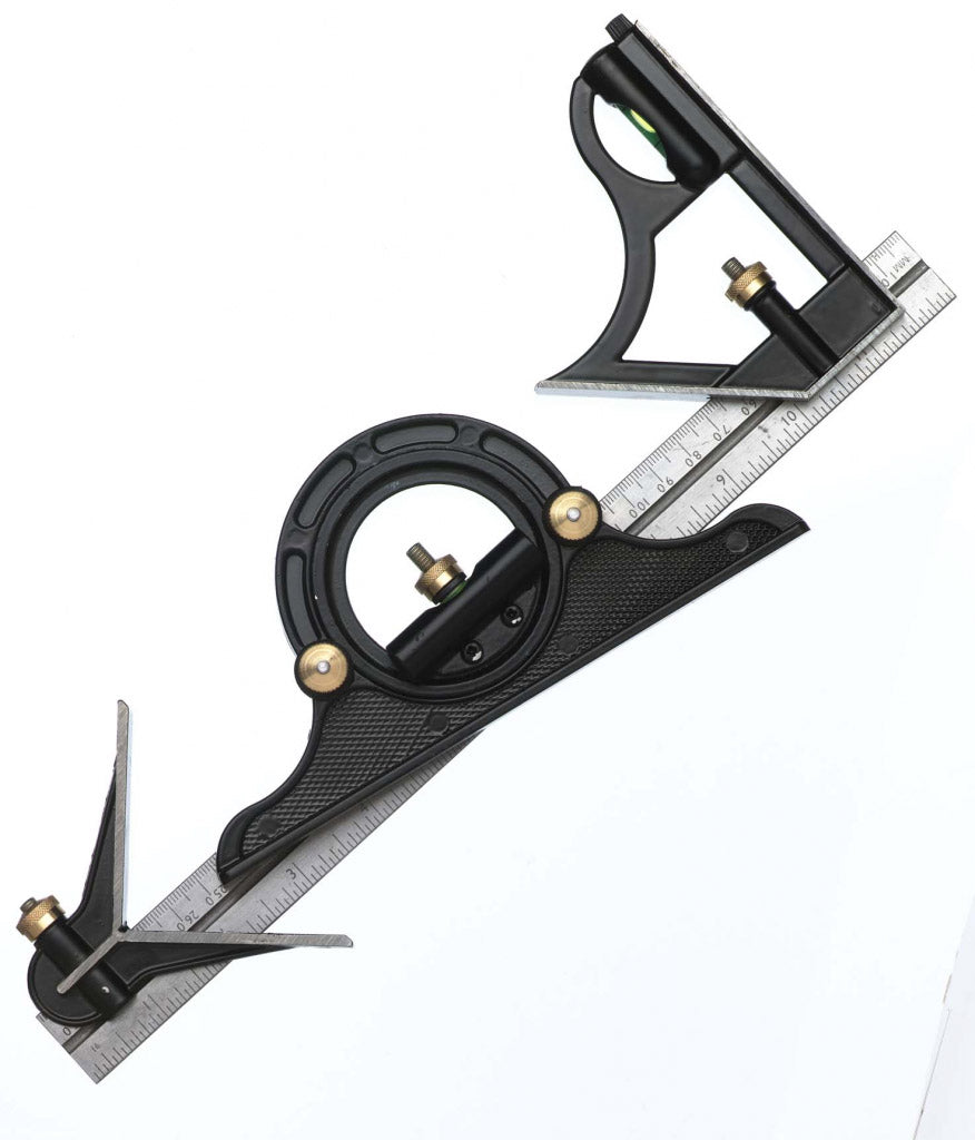 Fisher Combination Square English & Metric Markings 12"/300mm Protractor Set