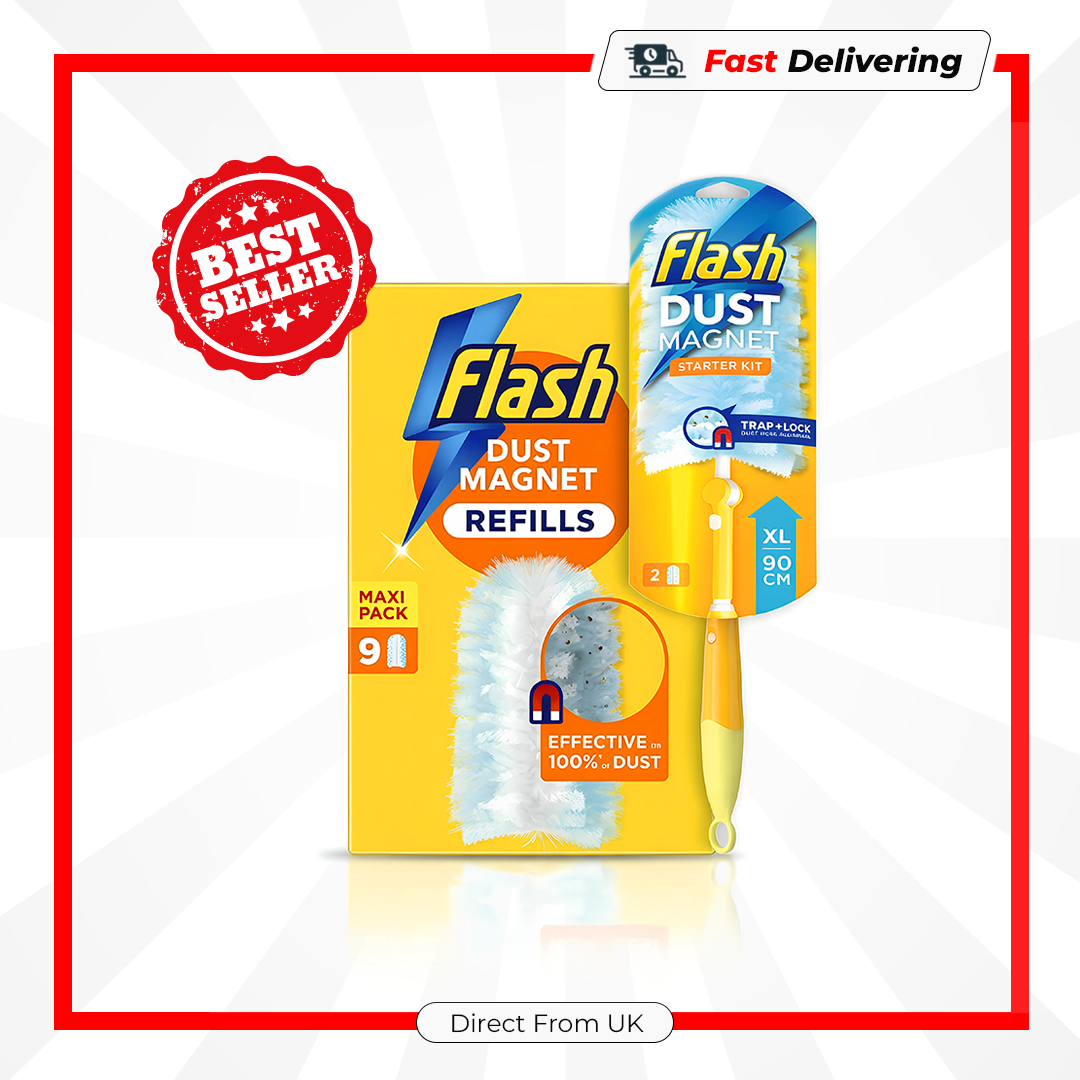 Keep your home or office effortlessly dust-free with the Flash Duster XL Starter Kit combined with Dust Magnet Refills. This slim, lightweight dusting solution is designed for fast, effective cleaning, reaching tight corners, delicate surfaces, and high areas with ease. With powerful dust-trapping technology and long-lasting refills, it’s the perfect all-in-one cleaning set for maintaining a spotless, fresh environment every day.