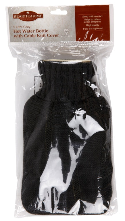 Hearth & Home Hot Water Bottle With Knit Cover Grey 1L