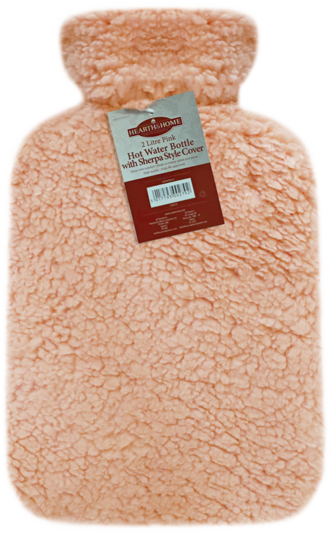 Hearth & Home Hot Water Bottle With Sherpa Style Cover 2L Pink