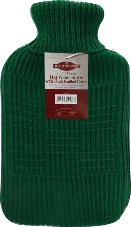 Hearth & Home Hot Water Bottle With Thick Knitted Cover 2L Green