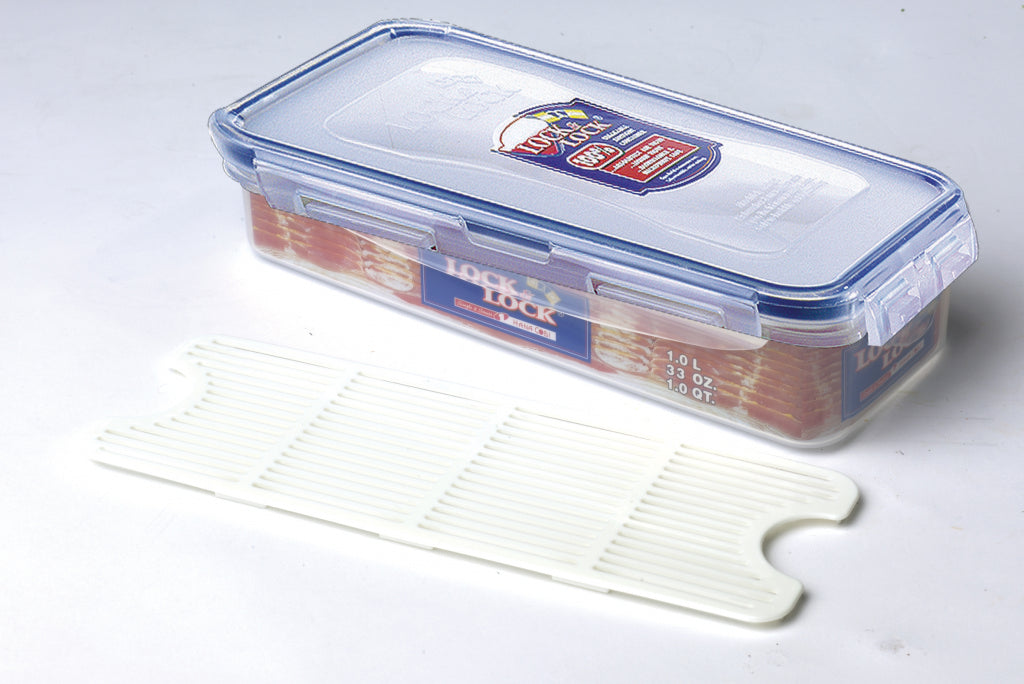 Locknlock Rectangular Bacon Food Storage Fridge Box with Freshness Tray 1L