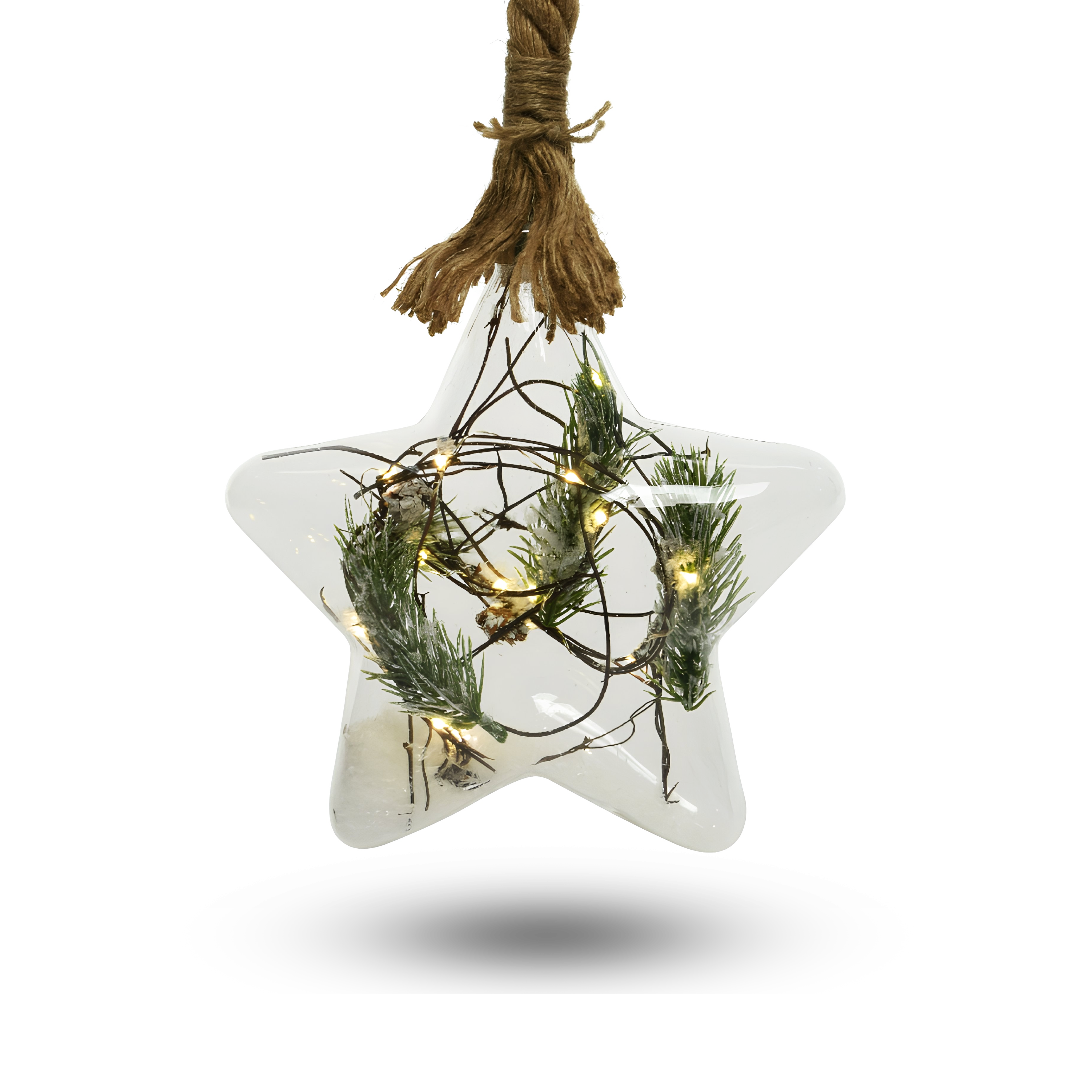 Illuminate your home with the Lumineo Micro LED Star (20cm, 40 LEDs) with Rope in warm white. Featuring a glass star with artificial pinegreen accents and jute rope, it’s perfect for Christmas trees, garlands, windows, or festive décor. Battery-operated (3 x AA, not included) with a 6-hour timer, it provides approx. 48–72 hours of magical illumination. Rope length: 0.8m | Lead cable: 1m. CE-certified, safe for indoor use.