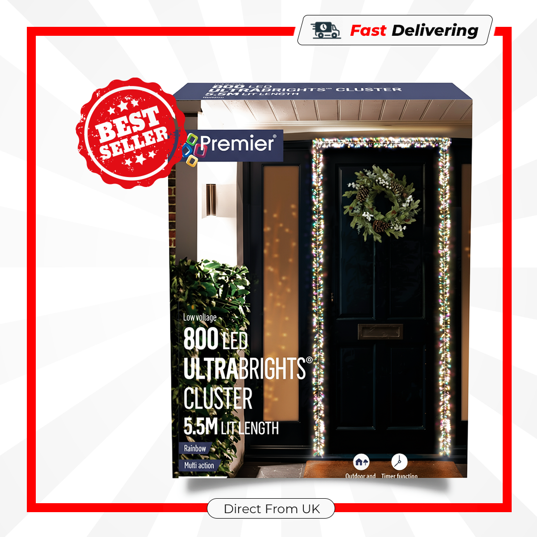 The Premier 800 LED Rose Gold Ultra Bright Cluster Rainbow Lights bring vibrant colour and elegance to your festive décor. Perfect for Christmas trees, garlands, or outdoor decoration, these lights are designed to create a full, radiant display that instantly lifts any festive setup.
