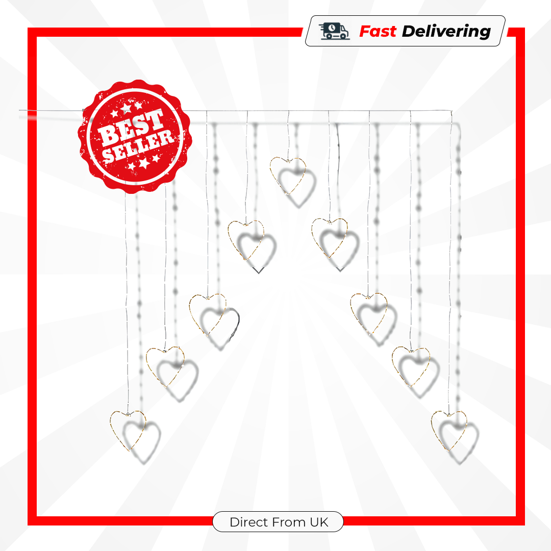 Features:- Heart-shaped V curtain light with 303 warm white LEDs