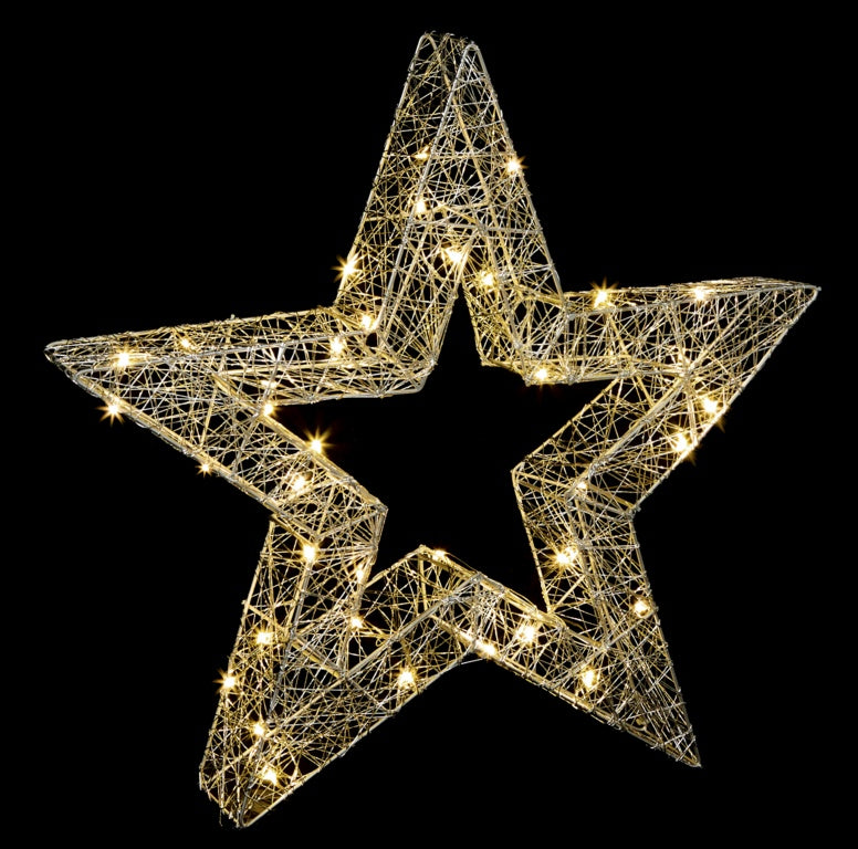 Premier Lit Hollow Star Silver Warm White LED 45cm