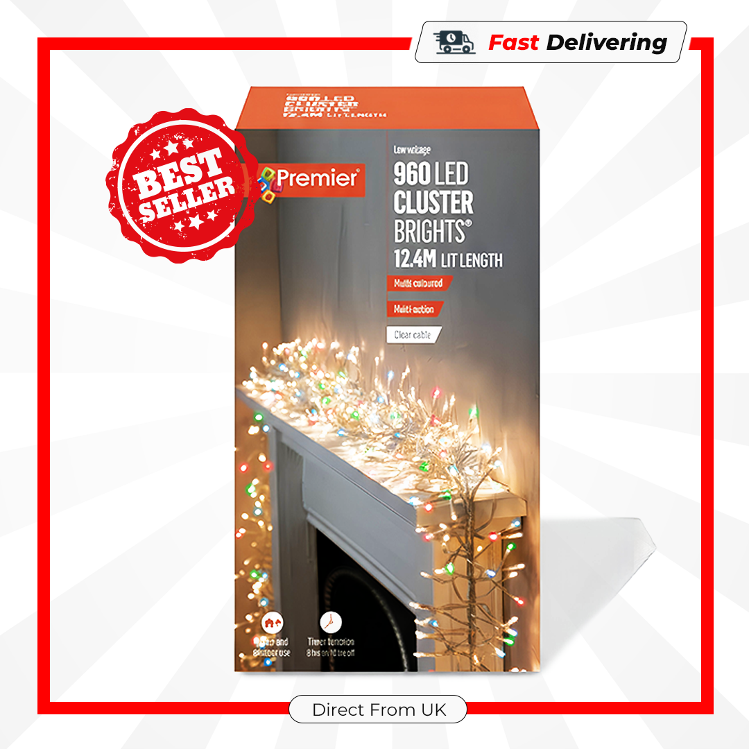 Add a warm, festive glow to your home with these Premier 960 LED Multi Action Cluster Lights. The dense LED layout creates a bright, full lighting effect that instantly enhances trees, garlands, stair rails and windows. With a built-in timer and multiple light modes, you can set the perfect mood effortlessly. Creates a cosy, welcoming atmosphere that feels joyful and seasonal.
