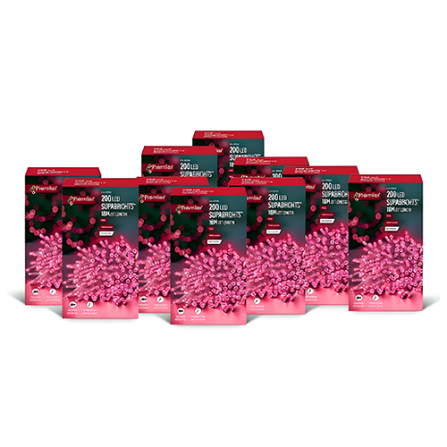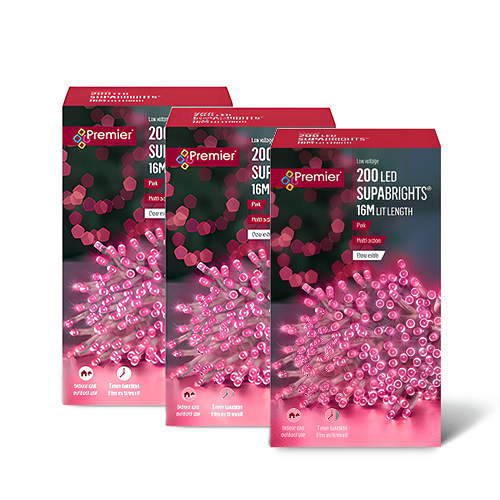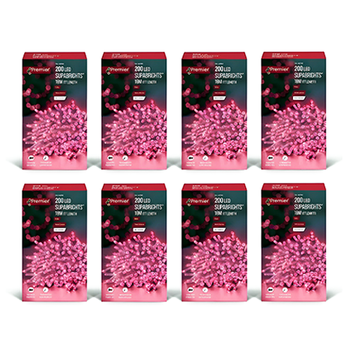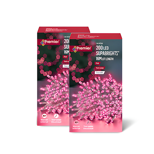 Brighten up your home, garden, or festive displays with these 200 Multi-Action Supabright Pink LED Lights. Designed for both indoor and outdoor use, these energy-efficient lights add a vibrant touch to Christmas trees, hedges, window displays, parties, weddings, and events.