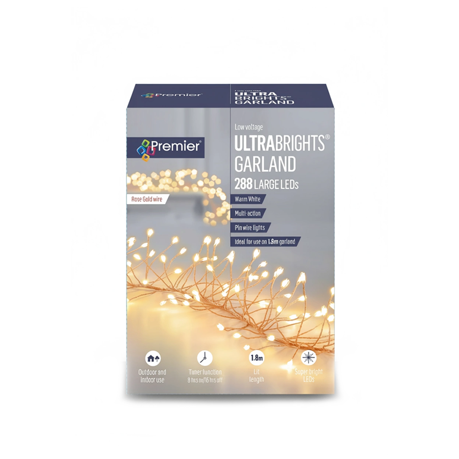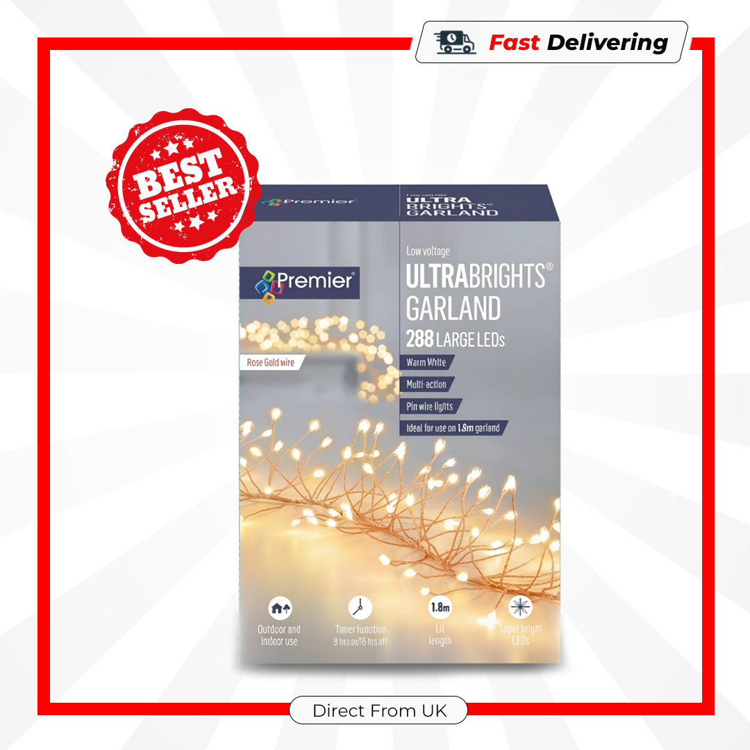 Create a stunning, warm, and stylish festive atmosphere with Premier Rose Gold LED Garland — vibrant, reliable, and perfect for Christmas.