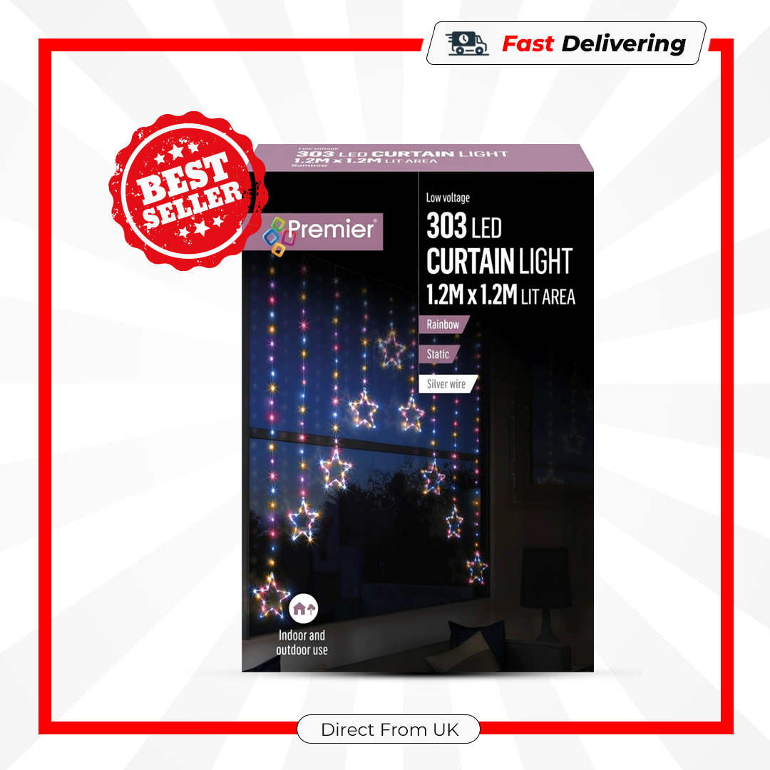 Transform any space into a magical festive display with this stunning star-shaped LED curtain. The soft rainbow glow creates a warm, joyful atmosphere—perfect for lifting the holiday spirit and making your home sparkle with colour.