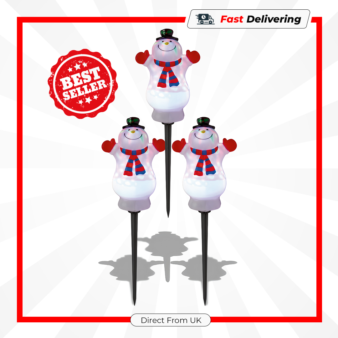 - 3 Piece Set: Includes three cheerful snowman path lights.