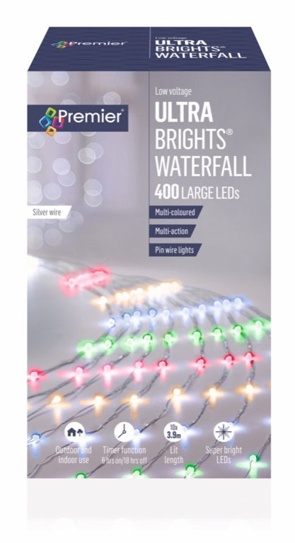 Premier UltraBrights Waterfall Lights 400 LEDs Multi Coloured Silver Wire
