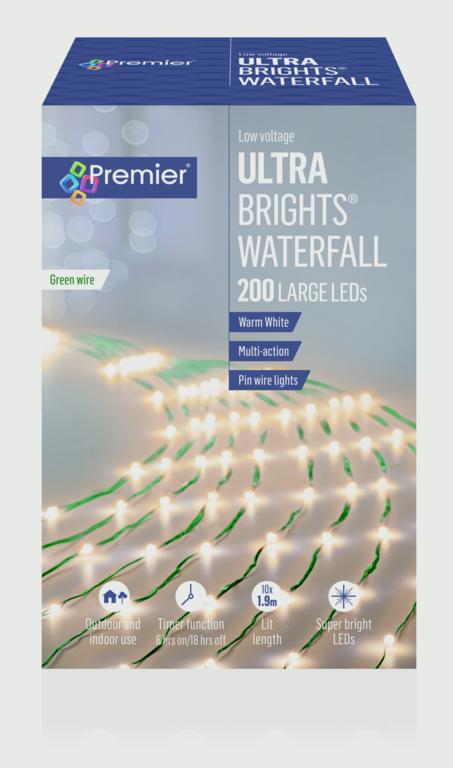 Premier UltraBrights Waterfall Lights 200 LEDs Warm White Green Wire