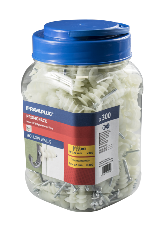 Flange prevents accidental push through in plasterboard.|Can be used in single and double thickness plasterboard.|Short length ideally suited for dry lined walls.|Installation with a standard screwdriver means that no special tools are necessary.|Recommended screw diameter: 3.5 - 4.2 mm|Must only be used with screw provided.
