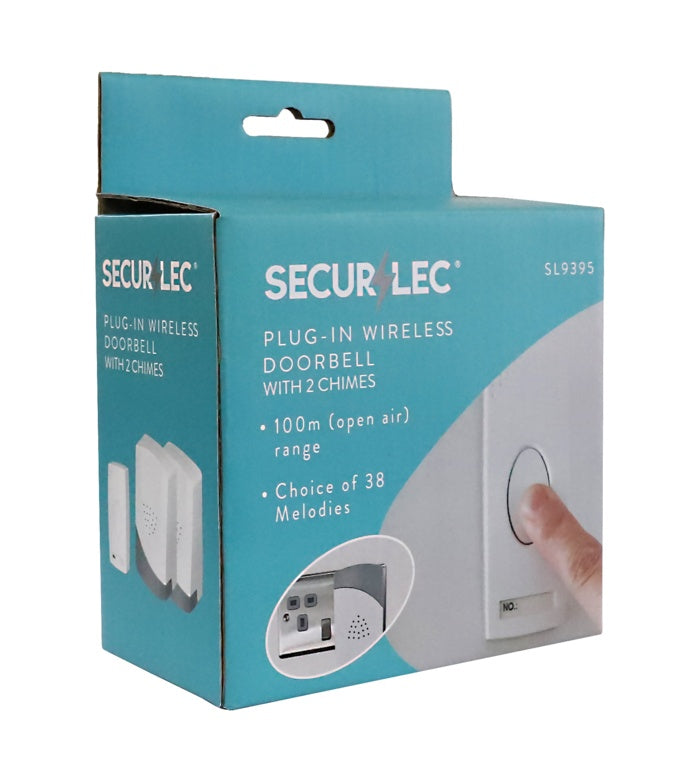 Securlec Plug-In Wireless Doorbell & 2 Chimes 100m