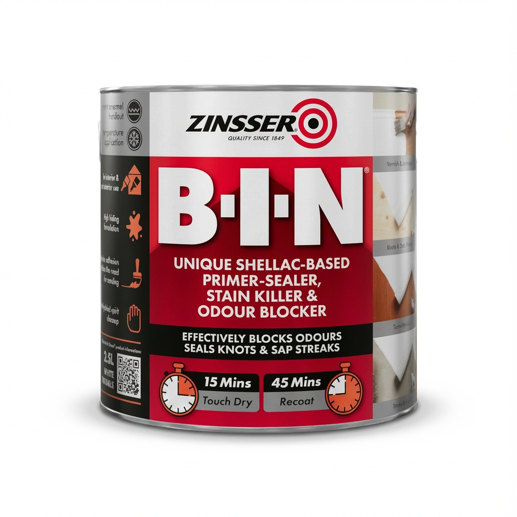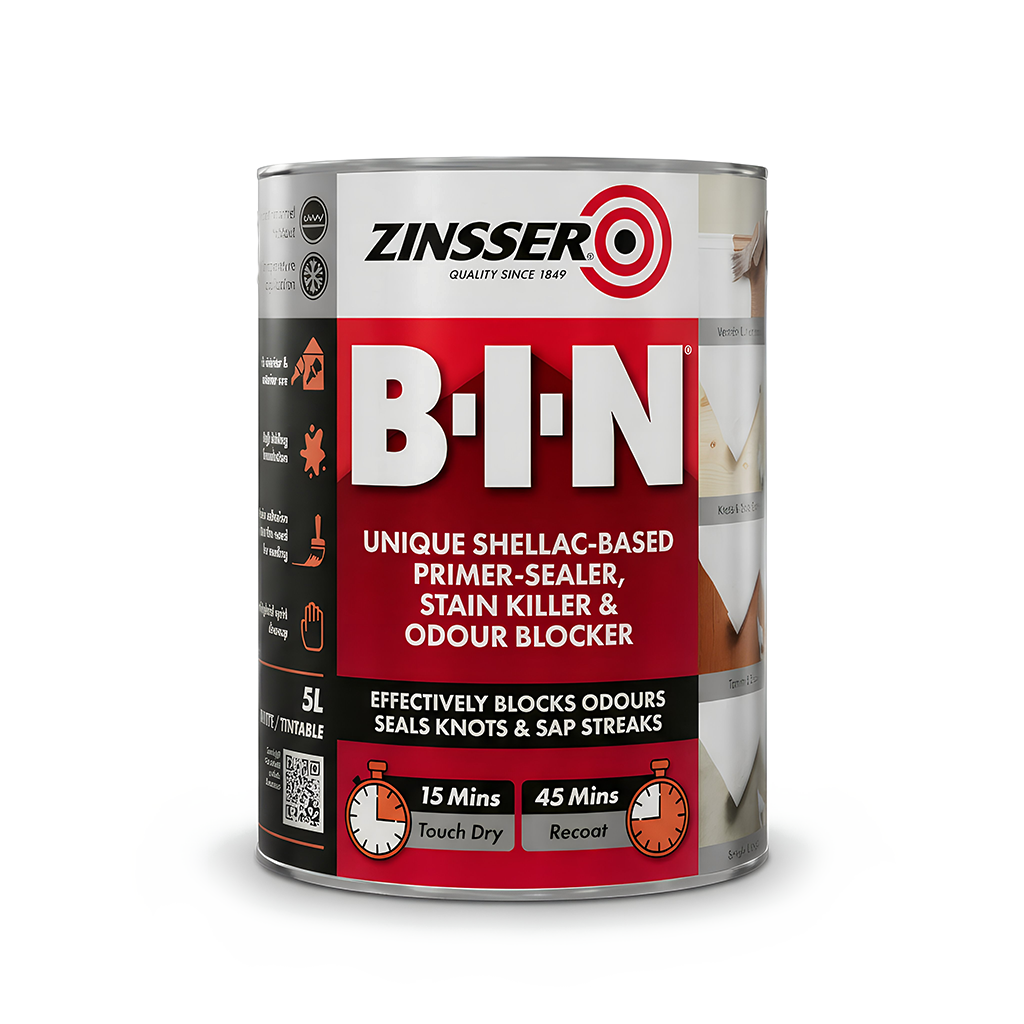 Zinsser B-I-N Primer Sealer 5L delivers professional-grade performance, blocking stains, knots, and odours while adhering effortlessly to almost any surface. Perfect for both interior and spot exterior use, it ensures a flawless base for paint, saving time and giving long-lasting results.